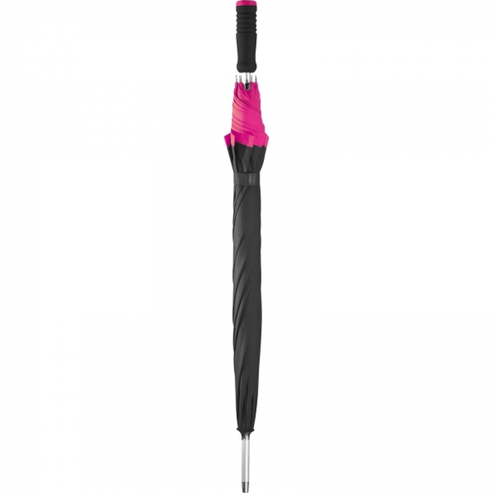 Elegancki parasol automatyczny wykonany z PU, metalu i materiału pongee. Parasol posiada miękki, prosty uchwyt.