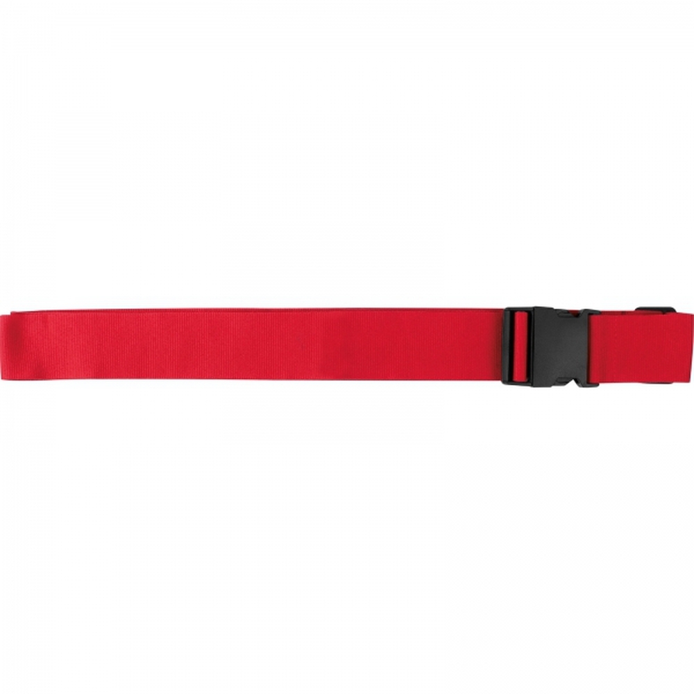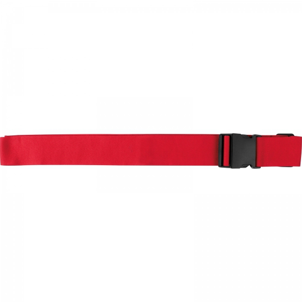 Regulowany (do 1,90m) pas bagażowy wykonany z poliestru z plastikowym zapięciem.