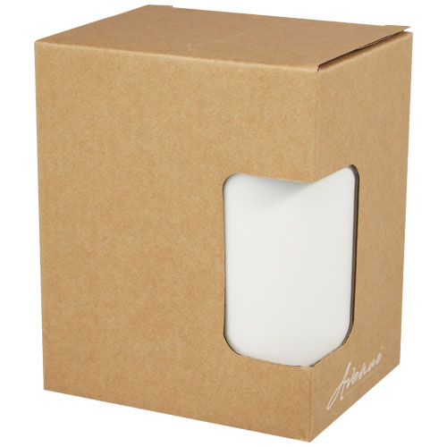 Duży współczesny kubek ceramiczny z matowym wykończeniem na zewnątrz. Kubek Perk ma dużą powierzchnię, idealną do maksymalnej ekspozycji logo. Wszystkie metody nadruku nadają się do mycia w zmywarce. Pojemność 480 ml. Zapakowany w kartonowe pudełko upominkowe wykonane z materiałów pochodzących z recyklingu.