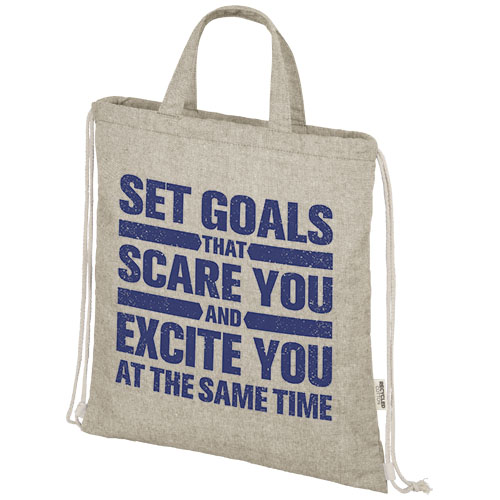 Plecak ściągany sznurkiem wykonany z mieszanki bawełny i poliestru pochodzących z recyklingu o gramaturze 150 g/m². Duża komora główna z bawełnianym sznurkiem ściągającym w kolorze naturalnym. Bawełna poddana recyklingowi pochodzi z tzw. wstępnych odpadów konsumpcyjnych wytwarzanych przez zakłady włókiennicze w trakcie procesu cięcia. Podobne kolory są mieszane ze sobą, więc nie jest wymagane dodatkowe barwienie. Ze względu na charakter bawełny pochodzącej z recyklingu mogą występować niewielkie różnice w kolorze. Dodaje to bardziej autentycznego wyglądu. Do każdego plecaka dołączony jest również znacznik Aware™. Ta innowacyjna funkcja pozwala użytkownikom prześledzić za pomocą kodu QR pochodzenie produktu i pokonaną przez niego drogę, zwiększając przejrzystość łańcucha dostaw i wspierając silniejszy związek między produktem a jego procesem produkcyjnym. Wytrzymałość do 5 kg. Długość uchwytu: 14 cm.