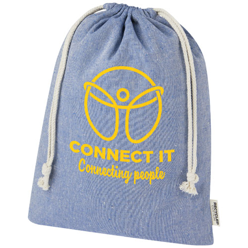 Torba upominkowa wykonana z bawełny z recyklingu z certyfikatem GRS z zamknięciem na sznurek bawełniany. Idealna do prezentów lub przechowywania przedmiotów. Wymiary: 30 x 42 cm.