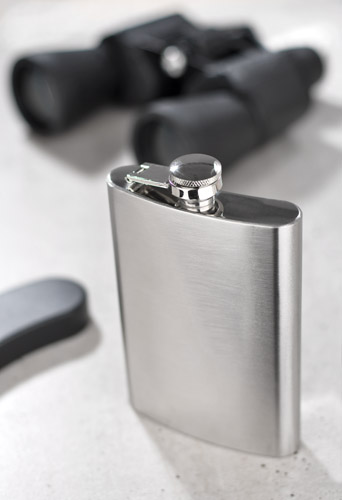 Piersiówka ze stali nierdzewnej o pojemności 240 ml, z bezpiecznym zamknięciem. Logo wykonujemy na powierzchni piersiówki poprzez grawerowanie laserem.