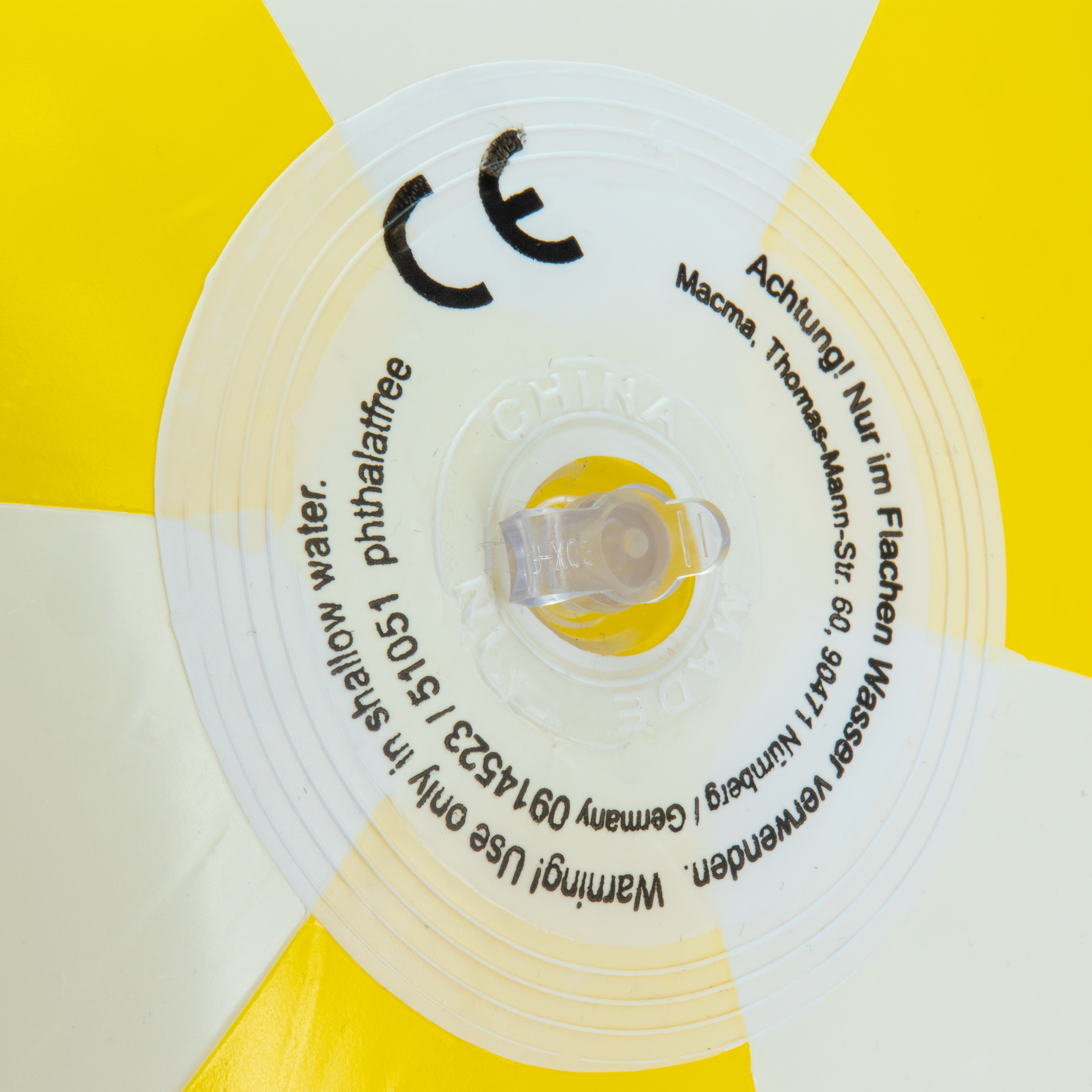 Dwukolorowa dmuchana piłka plażowa, wykonana z PVC, nie zawiera ftalanów. Długość panelu: 40 cm (średnica ~26 cm).