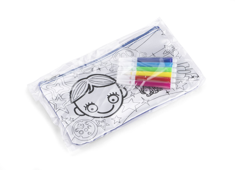 Piórnik ozdobiony grafiką do samodzielnego pokolorowania. Upominek, któyy potrafi zaangażować i bawić. W zestawie dołączone pisaki w 6 kolorach. Piórnik jednokomorowy zapinany na zamek.