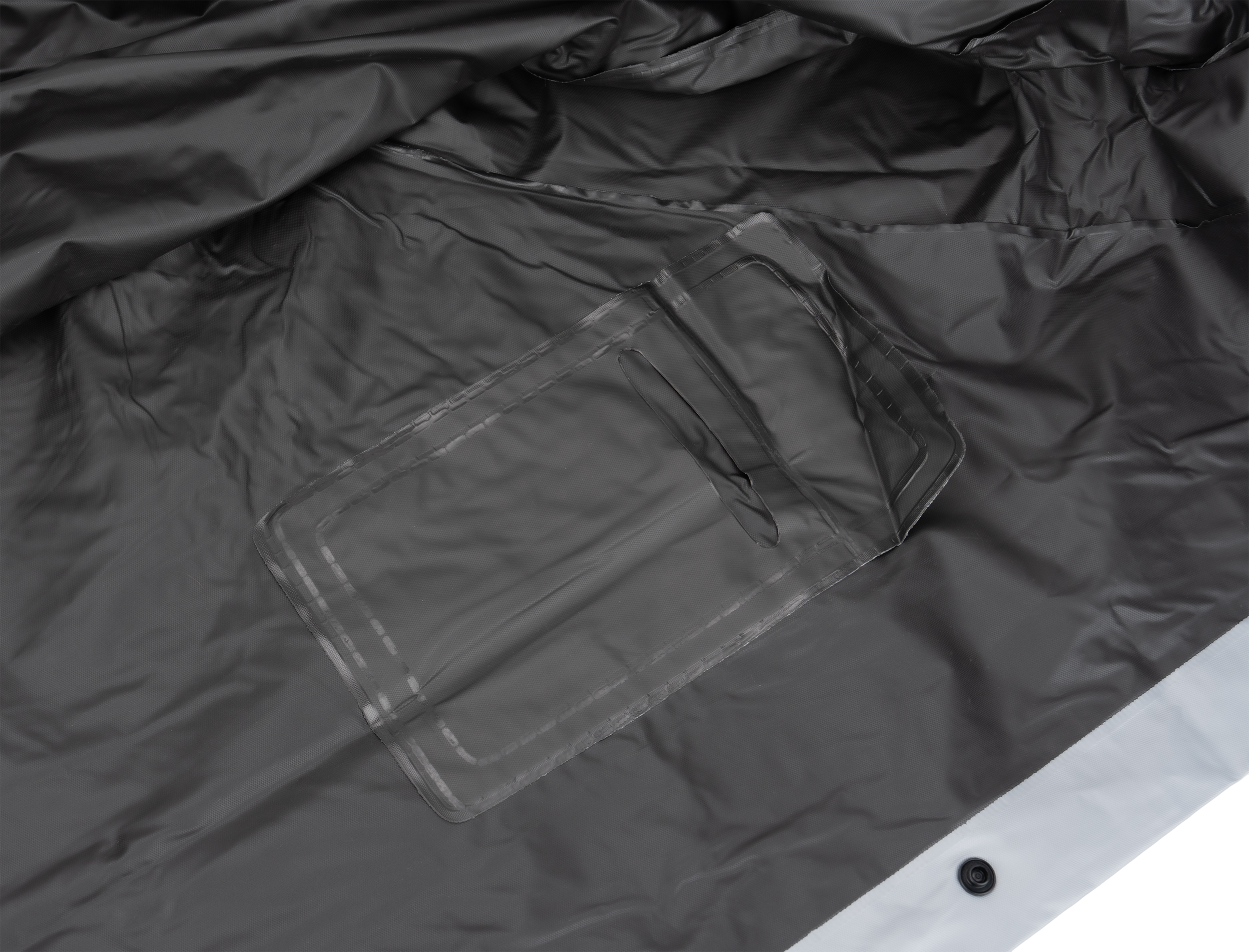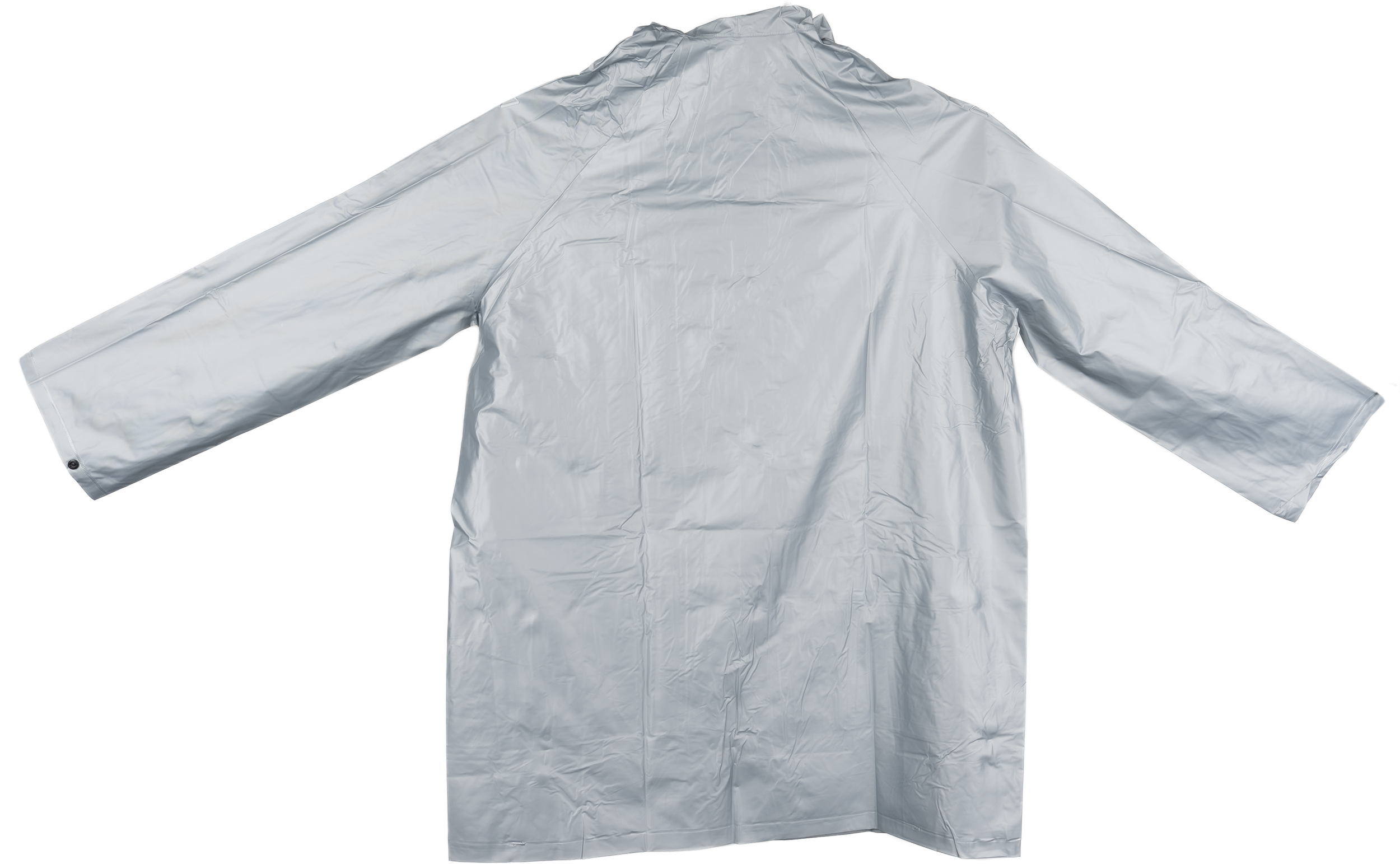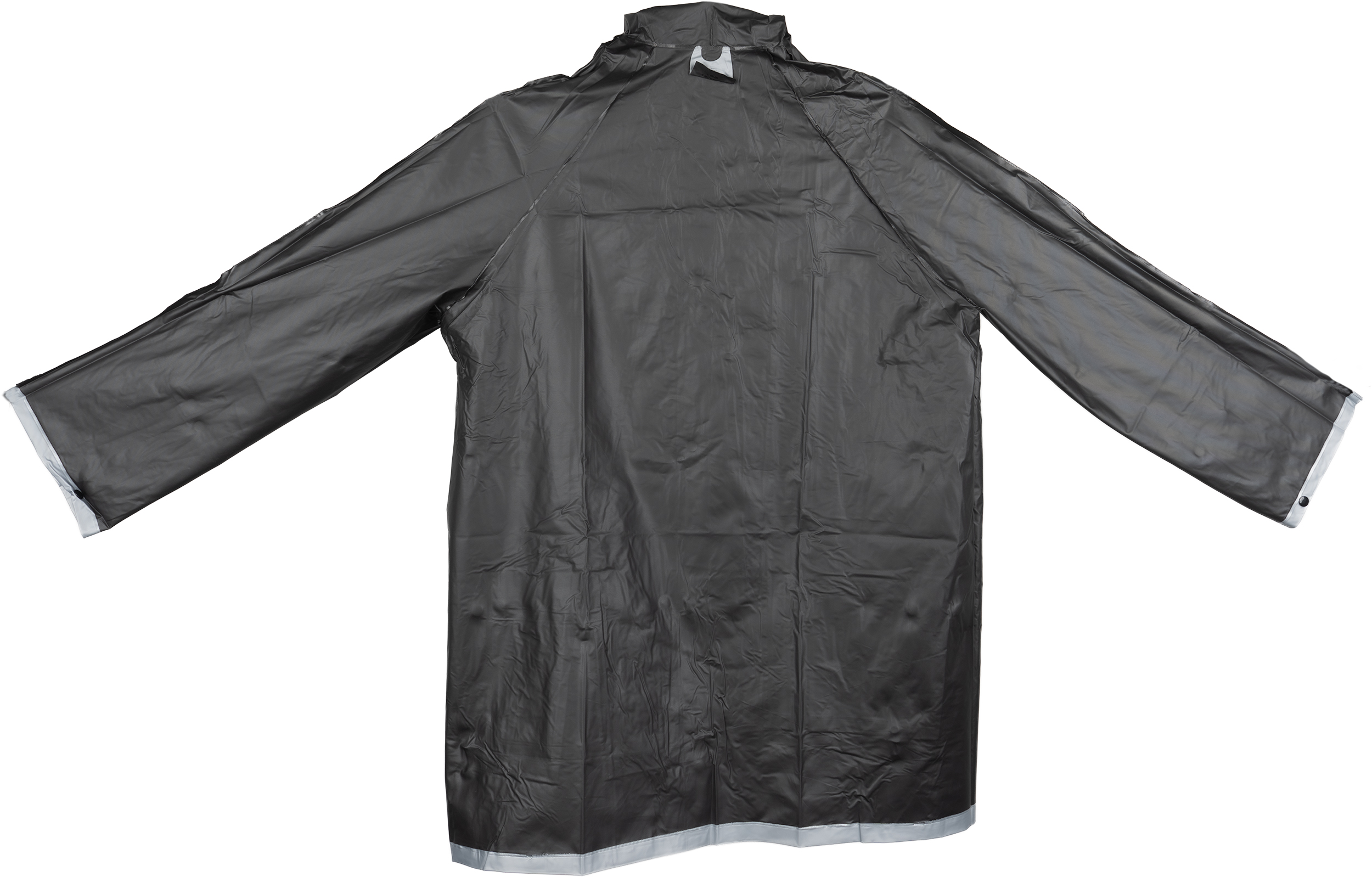 Dwukolorowa kurtka przeciwdeszczowa XL, z PVC (bez ftalanów), z zatrzaskami i kapturem. Wymiary pleców kurtki 103 x 60 cm.