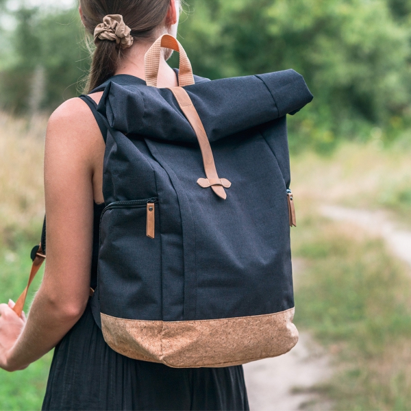 Plecak wykonany z trwałego poliestru 300D oraz ekologicznego RPET 210D gwarantuje odporność na codzienne zużycie, idealny do intensywnego użytkowania. Główna komora zamykana przez zrolowanie i zapięcie umożliwia elastyczne dopasowanie przestrzeni oraz zabezpiecza zawartość przed wilgocią i zabrudzeniami. Dwie boczne kieszonki na zamek zapewniają szybki dostęp do drobiazgów, takich jak telefon czy portfel, co zwiększa komfort organizacji. Regulowane szelki pozwalają idealnie dopasować plecak do sylwetki, a wygodny uchwyt ułatwia przenoszenie go w ręce.