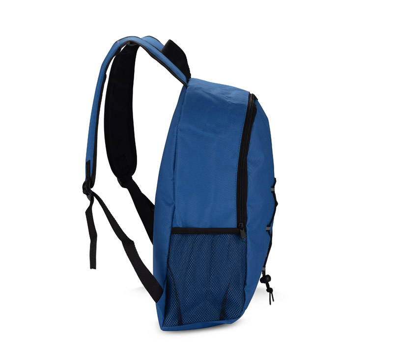 Plecak KAPIRO wykonany z poliestru 600D. Posiada jedną komorę główną zamykaną na zamek oraz dwie siateczkowe kieszonki boczne. Czarne gumki pełnią praktyczny element podróży – można wykorzystać to miejsce do zapakowania małego kocyka lub lekkiej kurtki.