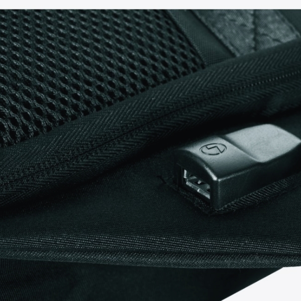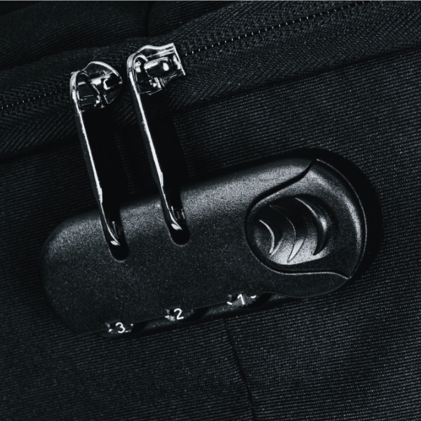 Plecak z zabezpieczeniami przed kradzieżą. Wejście do głównej części plecaka skierowane jest w stronę torby, co utrudnia dostęp komuś innemu. Plecak posiada również blokadę do zabezpieczenia zamków błyskawicznych, ukrytą kieszeń na kartę płatniczą lub klucze, wyściełane miejsce na laptopa 15‘‘ i tablet 10 ''. W zestawie znajduje się również wyjście z kablem USB oraz pasek do przypięcia do walizki. Przednia powierzchnia jest wyposażona w odblaskowe akcesoria. Pojemność plecaka to 20,5 l.