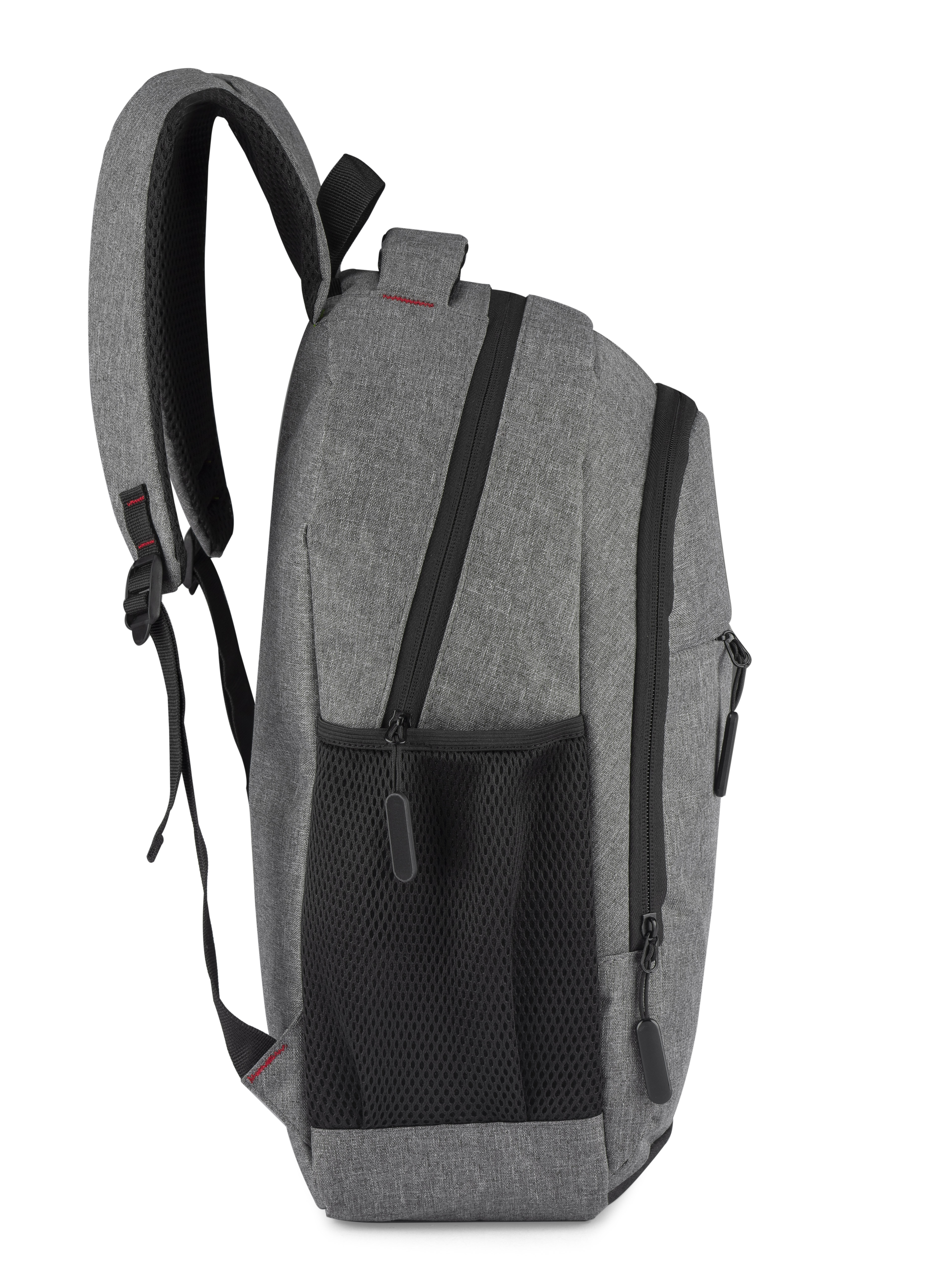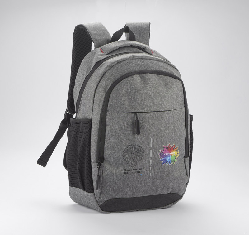 Plecak MARSH wykonany z mocnego poliestru 600D posiada pojemną główną komorę z wąską przegrodą zapinaną paskiem z rzepem. Zmieści ona 15-calowy laptop. Z przodu mniejsza komora zapinana na zamek oraz spora kieszeń również zasuwana zamkiem. Po obu stronach znajdują się siateczkowe kieszenie na napój. Usztywniane plecy i szelki wykończone miękką siateczką poprawią komfort użytkowania. U góry wygodna i szeroka rączka do chwycenia. Wewnątrz czarna podszewka.