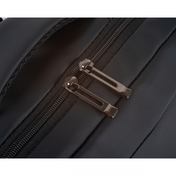 Plecak na laptopa wykonany z poliuretanu (PU), odpowiedni na laptopy 15-16 cali. Ma dwie przednie przegródki z zamkami błyskawicznymi, duży główny przedział z wyściółką na laptop, różne wewnętrzne kieszenie wsuwane, wyściełane paski na ramiona, uchwyt do noszenia i pasek z tyłu do mocowania do walizki.