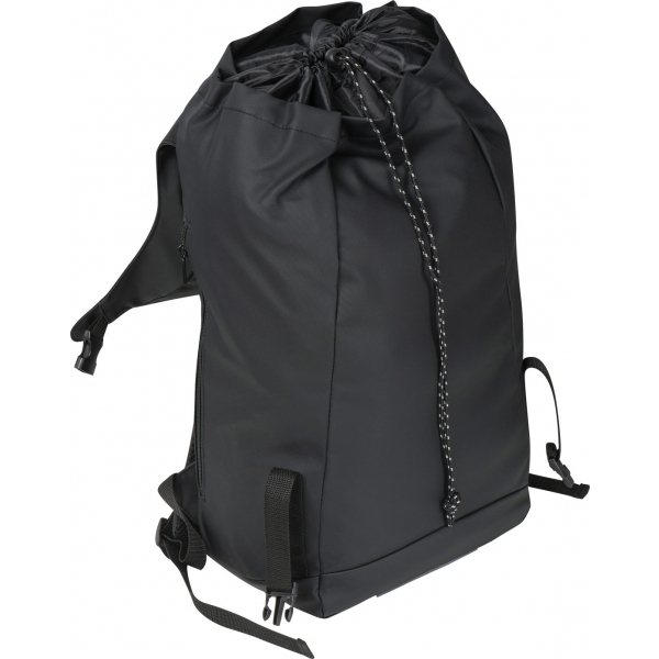 Duży plecak wykonany z poliestru z wodoodporną powłoką PU. Oprócz dużej komory głównej z przegrodą na laptopa i wyściełanym tyłem, posiada ona również dwie przegrody zapinane na zamek po prawej i lewej stronie na zewnątrz, a także sznurek do zamykania i klapkę, która utrzymuje zawartość suchą podczas deszczu.