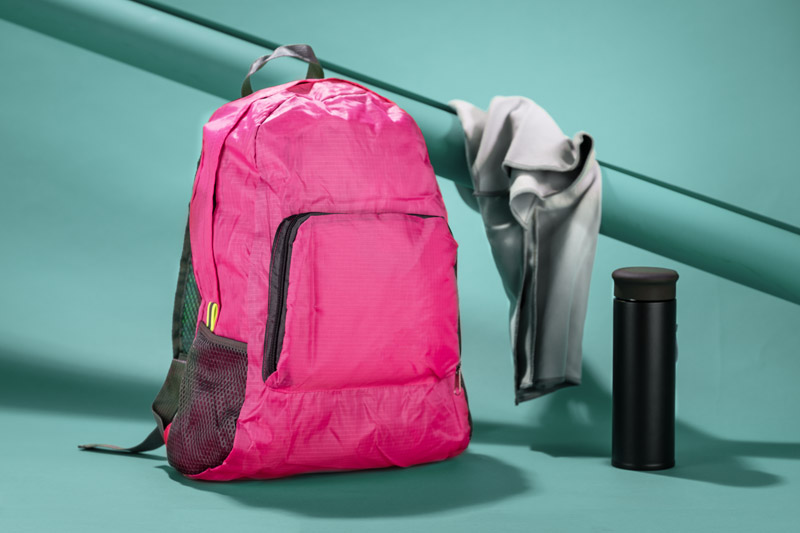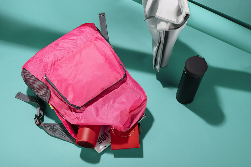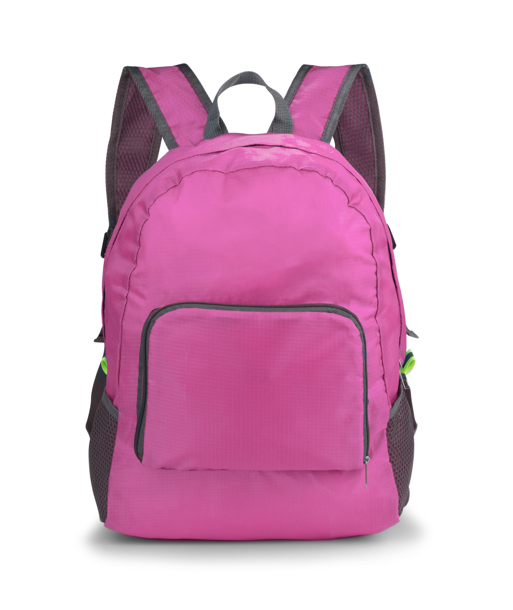 Funkcjonalny plecak, który można złożyć do niewielkich rozmiarów. Posiada jedną wewnętrzną kieszeń oraz trzy zewnętrzne - jedną zapinaną na zamek oraz dwie siateczkowe. Plecak wykonany z poliestru.