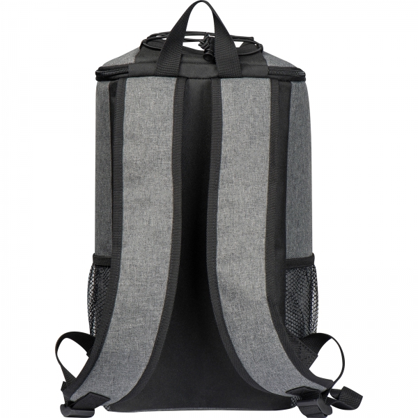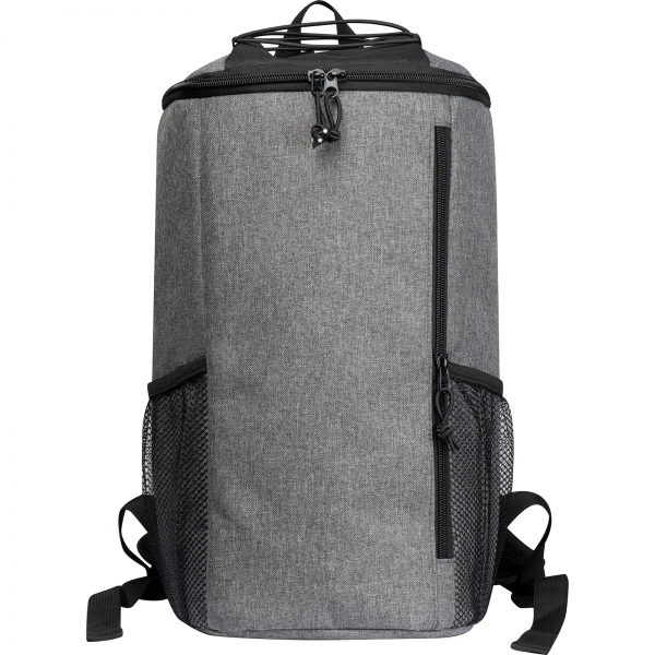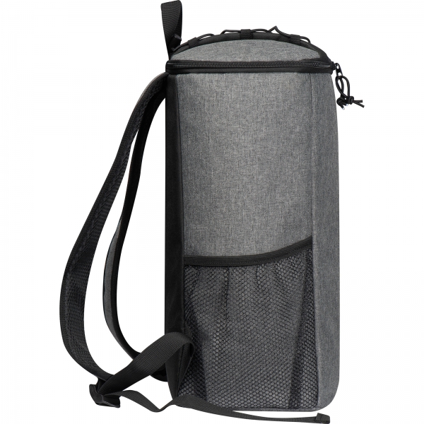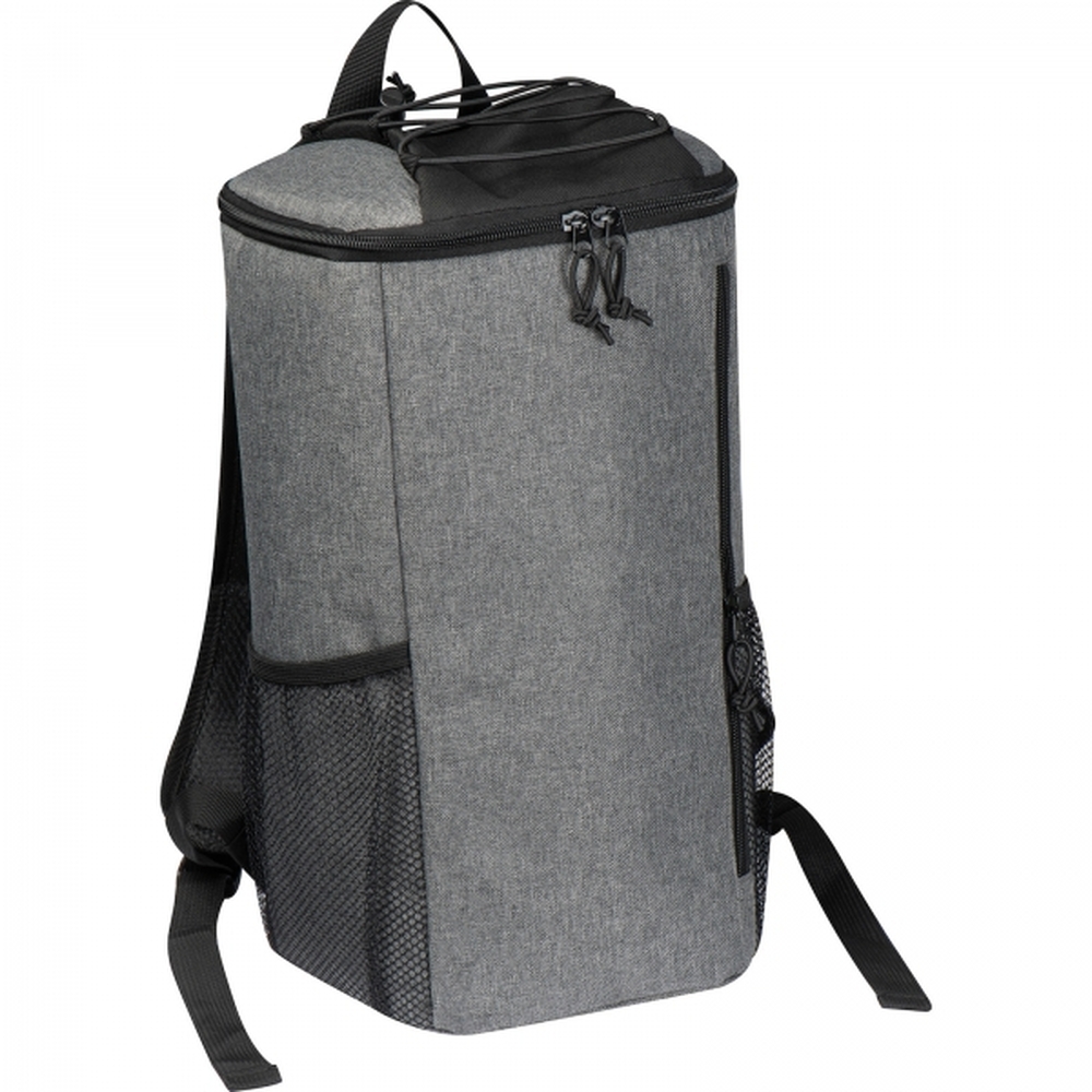 Plecak chłodzący wykonany z poliestru 600D, z bocznymi kieszeniami z siatki, główną komorą zamykaną na zamek błyskawiczny. Pojemność 10 l.