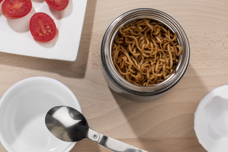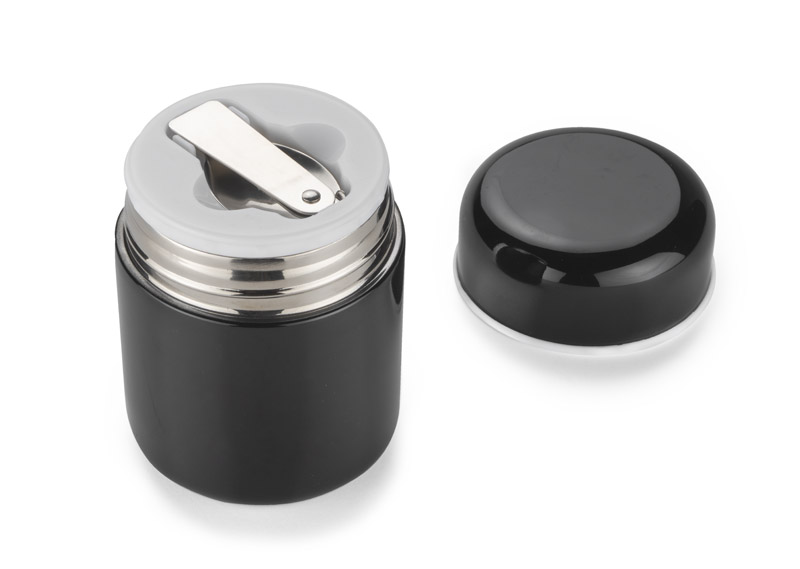 Pojemnik termiczny DINA łączy w sobie funkcję termosu i pojemnika na żywność. Niewielkich rozmiarów pojemnik możemy zabrać ze sobą wszędzie i cieszyć się ciepłym lunchem w pracy lub w szkole. Dla wygody w zakrętce umieszczona jest składana łyżka ze stali nierdzewnej. Dzięki izolacji próżniowej temperatura utrzymuje się do 8 godzin. Wnętrze pojemnika jest wykonane ze stali nierdzewnej o podwyższonym standardzie.