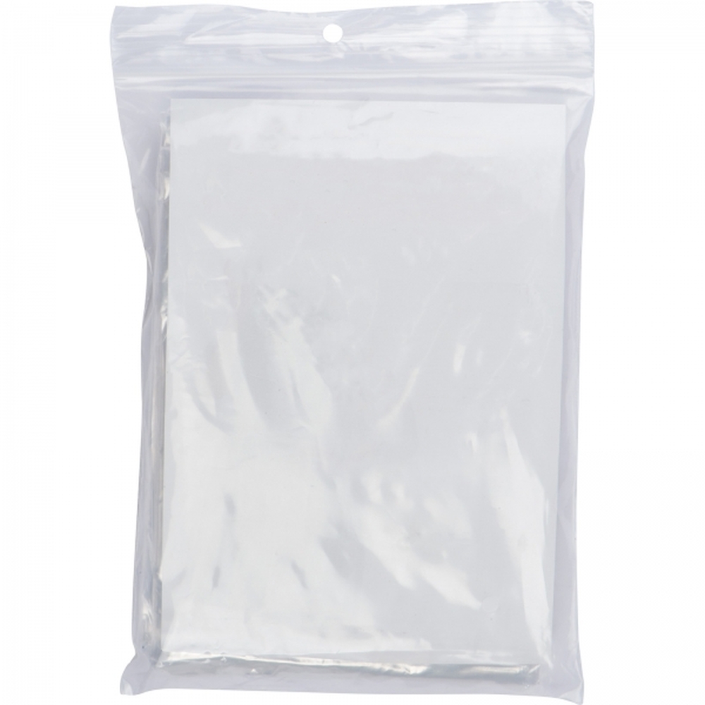 Transparentna peleryna przeciwdeszczowa w uniwersalnym rozmiarze. Plecy rozłożonego płaszcza - 115 x 110 cm, złożony - 16 x 9 cm.