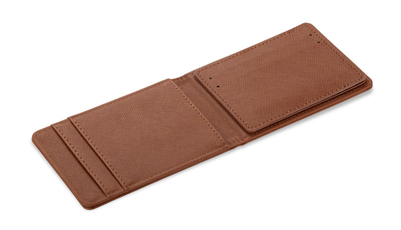 MAGNE to minimalistyczny portfel wykonany materiału skóropodobnego (PU). Składa się z dwóch elementów: głównej części z miejscem na karty oraz dodatkowego etui, które również oferuje przestrzeń na karty lub dokumenty. Oba elementy można wygodnie nosić razem lub osobno, dopasowując je do swoich potrzeb. Jego prosty i elegancki design sprawia, że jest praktycznym dodatkiem na co dzień. Magne to doskonały wybór na gadżet reklamowy, który można personalizować, np. dodając logo firmy.