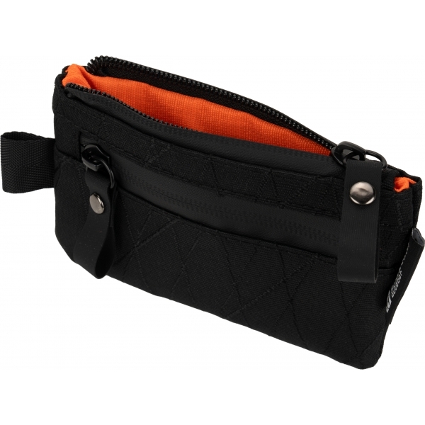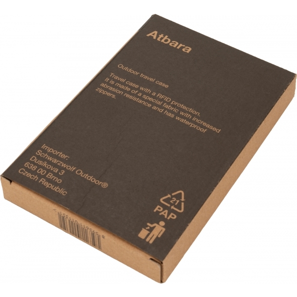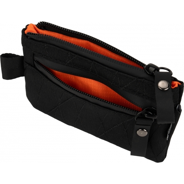 Mały portfel podróżny z ochroną RFID, posiada główną kieszeń oraz mniejszą, frontową, obie zapinane na zamek. Portfel wykonany z materiału odpornego na ścieranie.