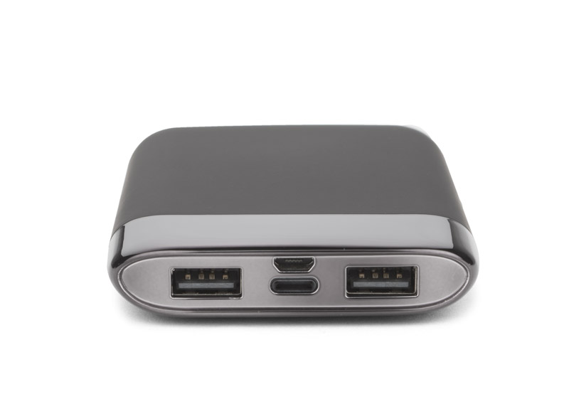 MING to genialny gadżet reklamowy! Power bank z gumowaną powłoką o pojemności 8000 mAh z podświetlanym logo (po wykonaniu grawerowania) mocno wyróżnia się na tle innych produktów z tej kategorii. Aby wywołać efekt podświetlenia logo wystarczy potrząsnąć power bankiem. Posiada możliwość ładowania dwóch urządzeń jednocześnie. Produkt jest zgodny z odpowiednimi dyrektywami Unii Europejskiej, posiada znak CE oraz 1 rok gwarancji. W zestawie kabel do ładowania z końcówką micro USB. Dane techniczne: - wejście: 5V/1.5A (port micro USB i Lightning iPhone) - wyjścia: 5V/2A (porty USB) - bateria litowo-polimerowa