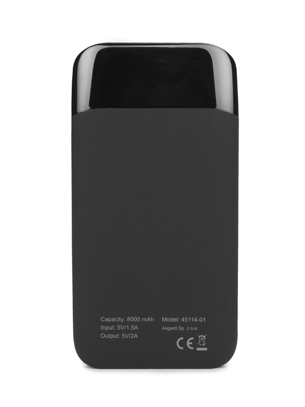 MING to genialny gadżet reklamowy! Power bank z gumowaną powłoką o pojemności 8000 mAh z podświetlanym logo (po wykonaniu grawerowania) mocno wyróżnia się na tle innych produktów z tej kategorii. Aby wywołać efekt podświetlenia logo wystarczy potrząsnąć power bankiem. Posiada możliwość ładowania dwóch urządzeń jednocześnie. Produkt jest zgodny z odpowiednimi dyrektywami Unii Europejskiej, posiada znak CE oraz 1 rok gwarancji. W zestawie kabel do ładowania z końcówką micro USB. Dane techniczne: - wejście: 5V/1.5A (port micro USB i Lightning iPhone) - wyjścia: 5V/2A (porty USB) - bateria litowo-polimerowa