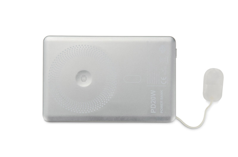 Power bank ZYNTRA o pojemności 5000 mAh i mocy 20 W to kompaktowe urządzenie łączące kilka nowoczesnych funkcji. Obsługuje szybkie ładowanie przewodowe i bezprzewodowe, w tym także indukcyjne ładowanie zegarka. Dzięki technologii MagSafe stabilnie utrzymuje telefon, a wbudowany stojak pełni jednocześnie funkcję uchwytu, ułatwiając korzystanie z urządzenia w trakcie ładowania. Wyposażony w port USB-C, umożliwia szybkie zasilanie różnych modeli smartfonów. Dodatkowym atutem jest praktyczna smycz zintegrowana z przewodem USB-C – USB-C, która ułatwia przenoszenie i pozwala ładować urządzenia w dowolnym miejscu. ZYNTRA to wielofunkcyjny gadżet reklamowy z możliwością znakowania, który doskonale sprawdzi się w pracy i podróży.