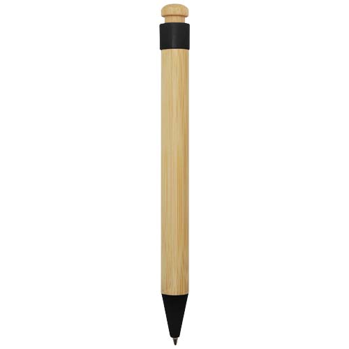 Długopis z klipsem i końcówką z plastiku z recyklingu oraz przyciskiem i korpusem z bambusa. Kolor tuszu: Czarny. Żywotność: 1000 metrów. Rozmiar stalówki: 1,0 mm.