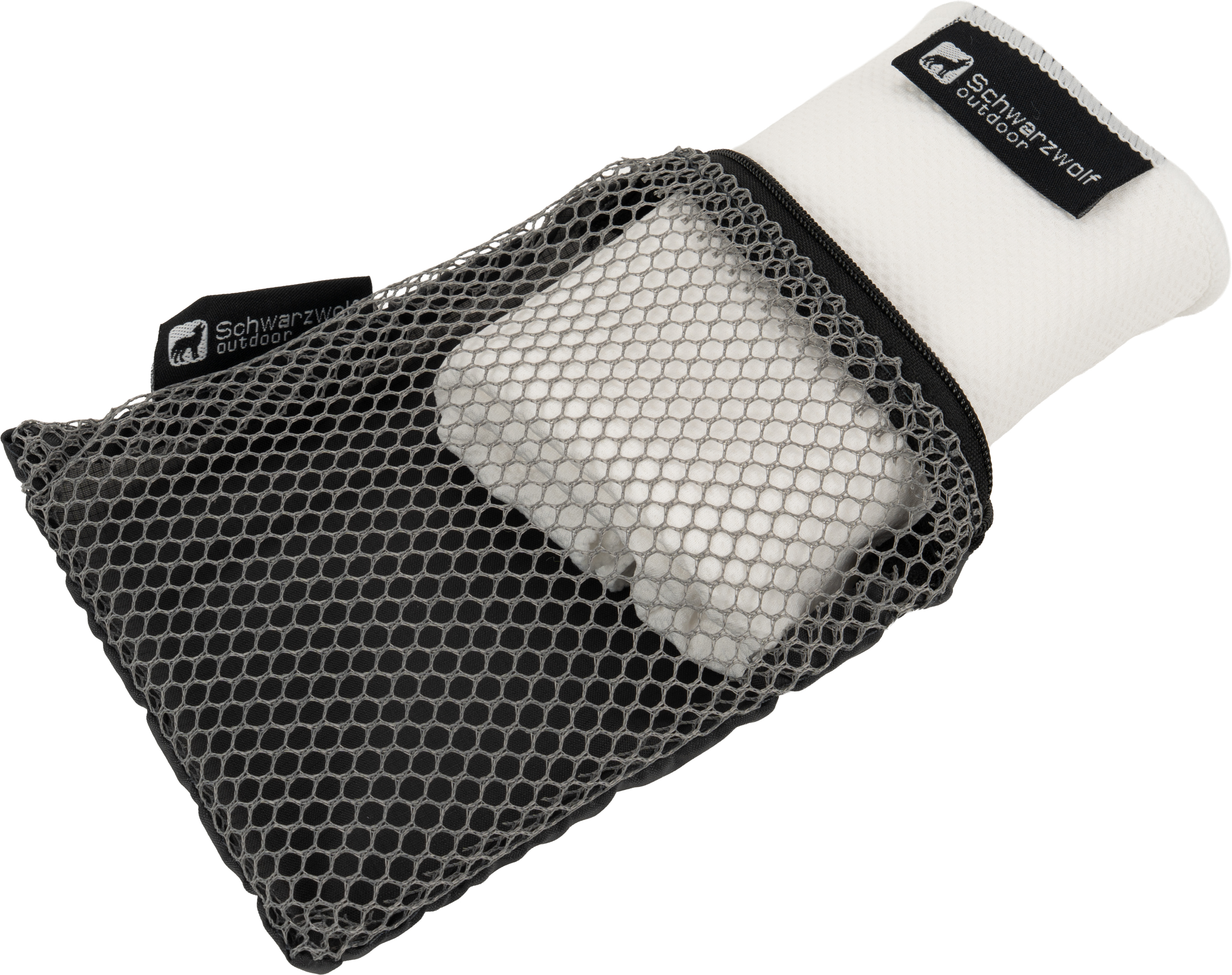Ręcznik sportowy Schwarzowolf wykonany z szybkoschnącego materiału: poliester 55%, poliamid 45%. Pakowany w etui z siateczki - 14 x 10 x 1 cm.