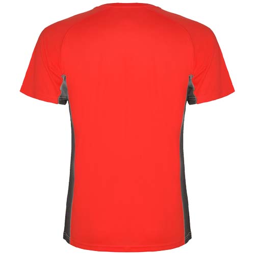 Techniczny i oddychający materiał. Połączenie dwóch materiałów poliestrowych: Główny materiał o splocie Birdseye, panele boczne i wewnętrzny rękaw z mikroperforowanego materiału. Okrągły dekolt z wewnętrznymi wzmocnionymi krytymi szwami. Usuwalna etykieta.