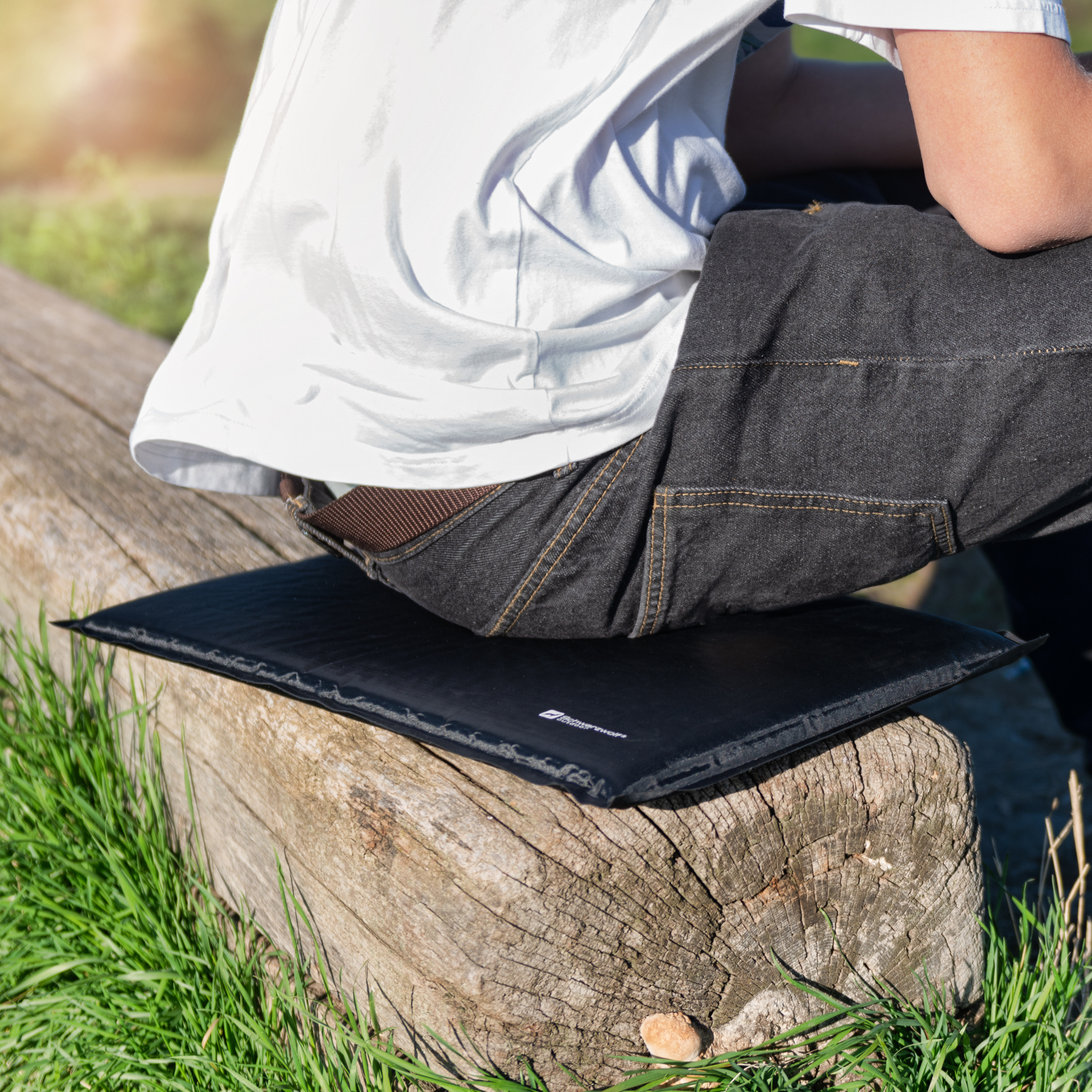 Poduszka podróżna dmuchana Schwarzwolf w czarnym kolorze. Zapakowana w woreczek ściągany sznurkiem.