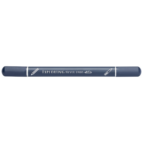 Skribo zestaw z notatnikiem i długopisem jest częściowo wykonany z poużytkowego poliestru pochodzącego z recyklingu, co czyni go bardziej zrównoważonym wyborem, ponieważ pomaga zmniejszyć zużycie pierwotnego surowca. Zawiera długopis z niebieskim tuszem i 80 kremowych kartek w linie z papieru makulaturowego o gramaturze 80 g/m2, pochodzącego ze zrównoważonych źródeł. Długość linii pisania długopisu wynosi 1000 metrów.