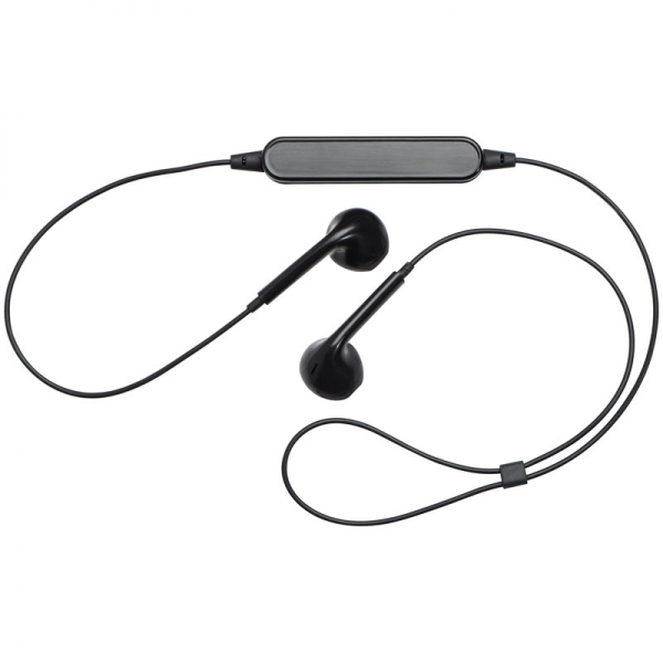 Bezprzewodowy zestaw słuchawkowy z funkcją Bluetooth. Produkt można ładować za pomocą kabelka USB. Dostępny w czarnej kolorystyce.