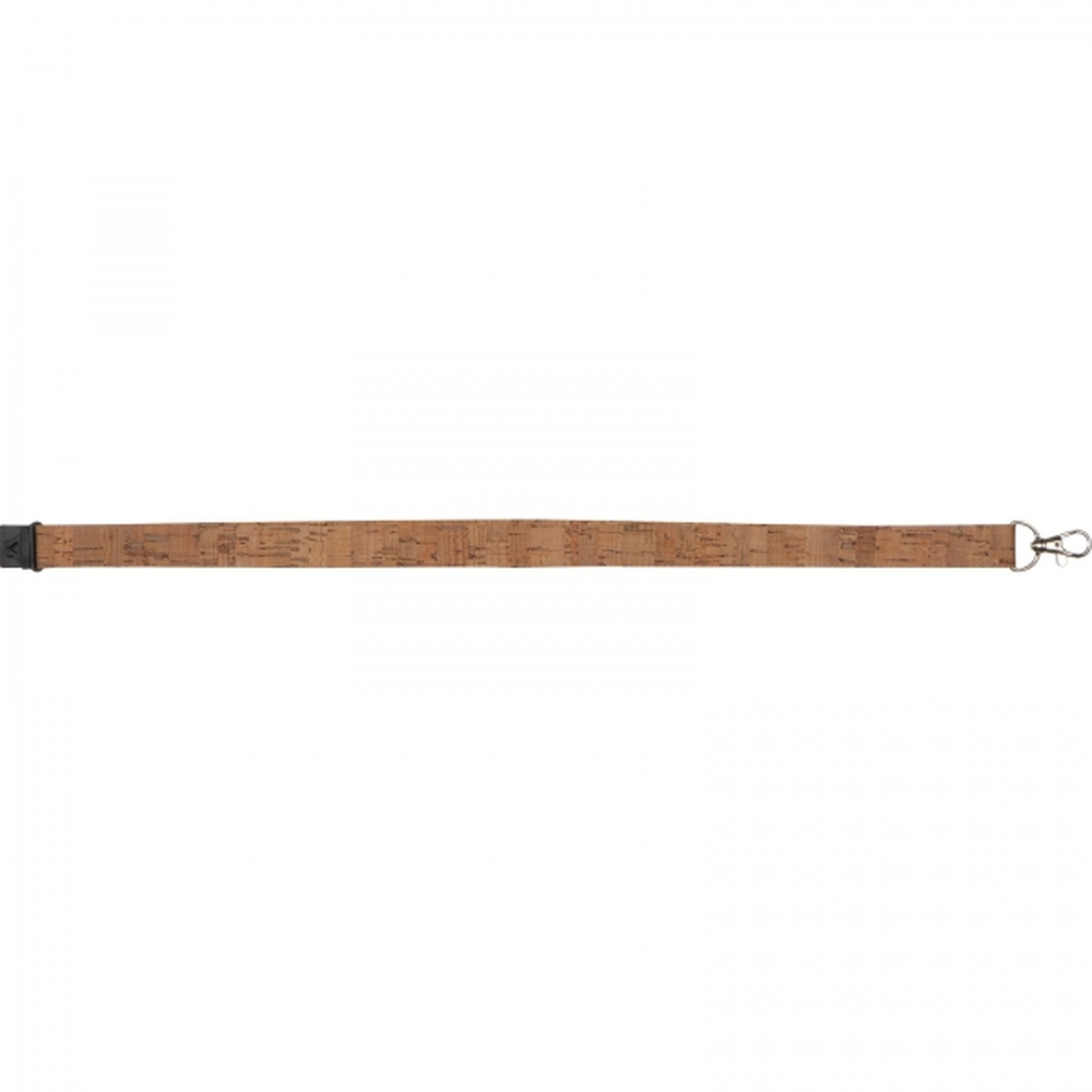 Smycz do kluczy wykonana z korka, z karabińczykiem i odczepianym klipsem zabezpieczającym.