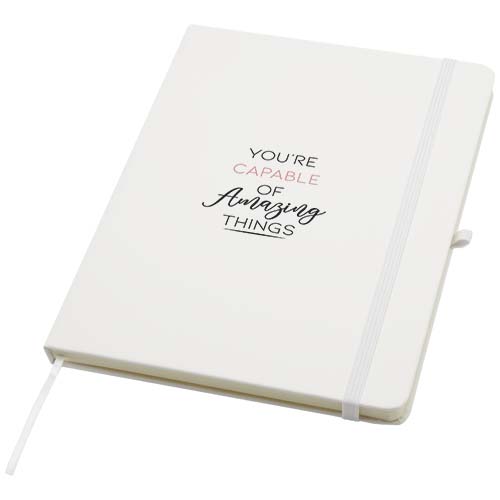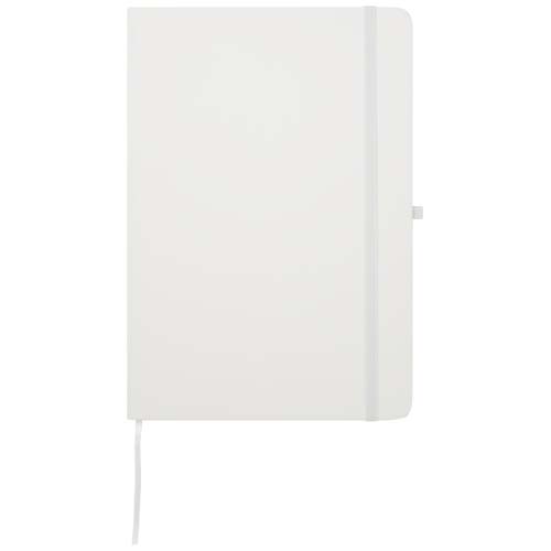Notatnik Spectrum Plus w formacie A5 z twardą okładką i zaokrąglonymi rogami to nie tylko niezbędny element wyposażenia biura, ale także świetna okazja do promocji marki. Tekturowy notatnik ma miękką okładkę i 80 liniowanych, kremowych kartek o gramaturze 70 g/m². Jest idealny do zapisywania szybkich pomysłów lub dłuższych notatek. Notatnik jest wyposażony w szlufkę na długopis, elastyczne zamknięcie, wstążkową zakładkę i harmonijkową kieszonkę.