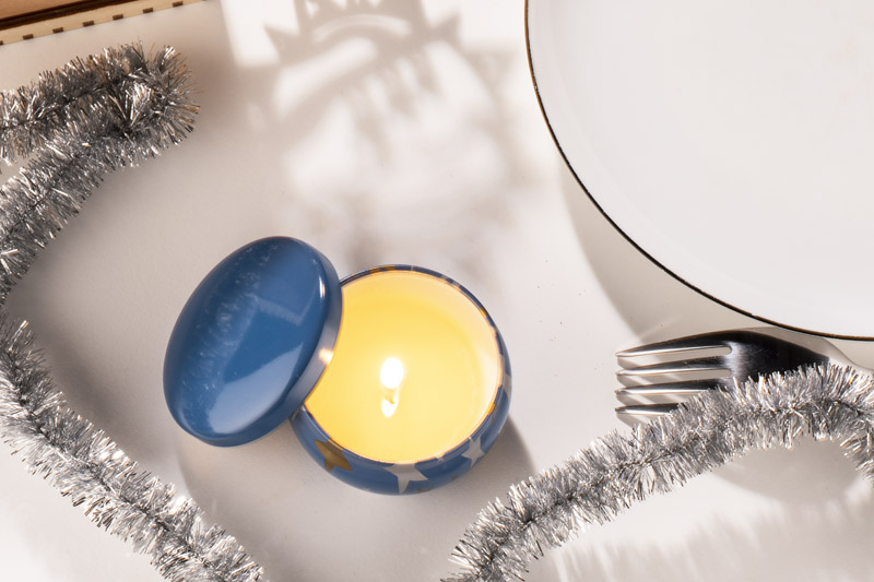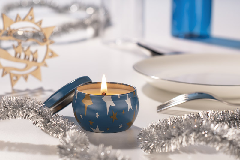 Świeca ASTRO została wykonana z naturalnego wosku sojowego o zapachu limonki, bazylii i mandarynki. Świeca w oryginalnej zamykanej puszce z nadrukiem srebrnych i złotych gwiazdek.