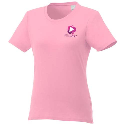Damska koszulka Heros z krótkim rękawem jest idealna na wszystkie imprezy. Dopasowane szwy boczne, krótsze rękawy i niższy dekolt zostały starannie przemyślane, aby stworzyć kobiecy krój i design. Wykonany z bawełny o gramaturze 150 g/m2 jest lekki i wygodny w noszeniu. Dodatkowo, materiał bawełniany jest miękki w dotyku i idealny dla wysokiej jakości brandingu. Dzięki wewnętrznej metce na karku, którą można łatwo usunąć w dwóch segmentach, projekt pozostawia miejsce na niestandardowy, wewnętrzny branding przy zachowaniu informacji o rozmiarze.