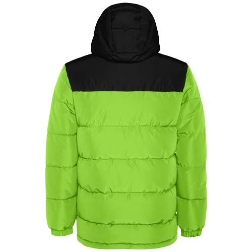 Ocieplana kurtka ze stałym kapturem. Zamek błyskawiczny z przodu kryty plisą. Osłona podbródka. Dwie boczne kieszenie zapinane na zamek. Elastyczne mankiety.