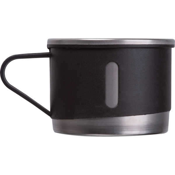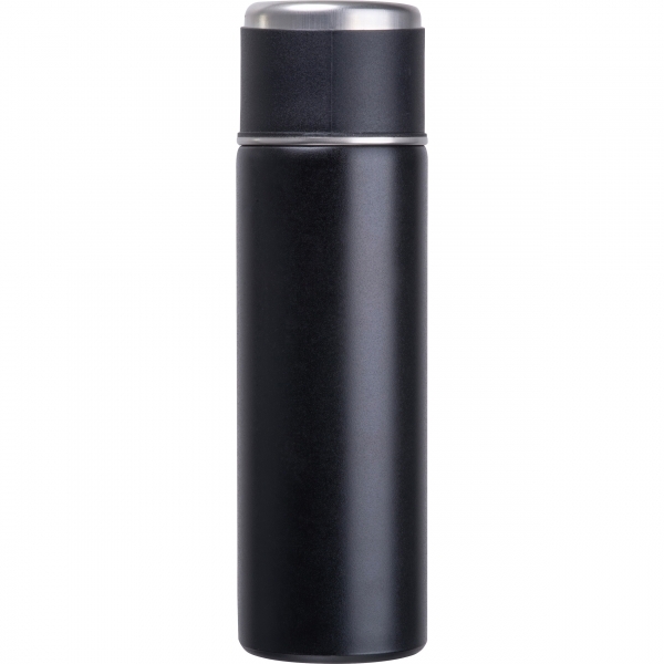 Butelka termiczna ze stali nierdzewnej z podwójnymi ściankami (400 ml) z szybkozamykaną nakrętką w zestawie z trzema do picia ze stali nierdzewnej (120 ml) z plastikową powłoką.