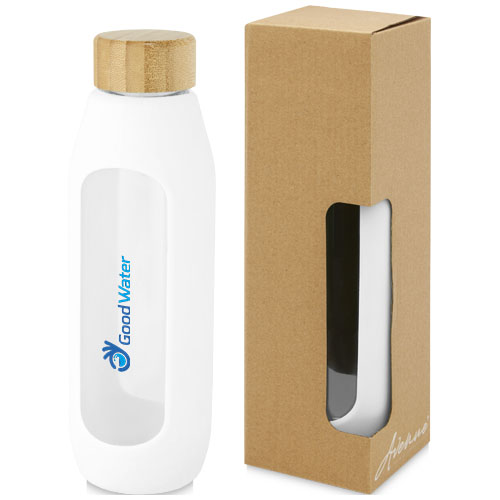 Przyjazna dla środowiska butelka na wodę wielokrotnego użytku, która zapewnia uczucie picia czystej wody. Butelka wykonana jest z wytrzymałego szkła borokrzemowego, które zachowuje czysty, prawdziwy, świeży smak wody, a także nie zawiera żadnych szkodliwych substancji chemicznych. Wyposażona w silikonowy uchwyt i szczelną pokrywkę z organicznego bambusa. Przetestowany i zatwierdzony zgodnie z niemieckimi przepisami dotyczącymi bezpieczeństwa żywności (LFGB), oraz poddany testom na zawartość ftalanów zgodnie z przepisami REACH. Pojemność 600 ml. Po zdjęciu uchwytu i pokrywki butelkę można myć w zmywarce. Zapakowany w kartonowe pudełko upominkowe wykonane z materiałów pochodzących z recyklingu.