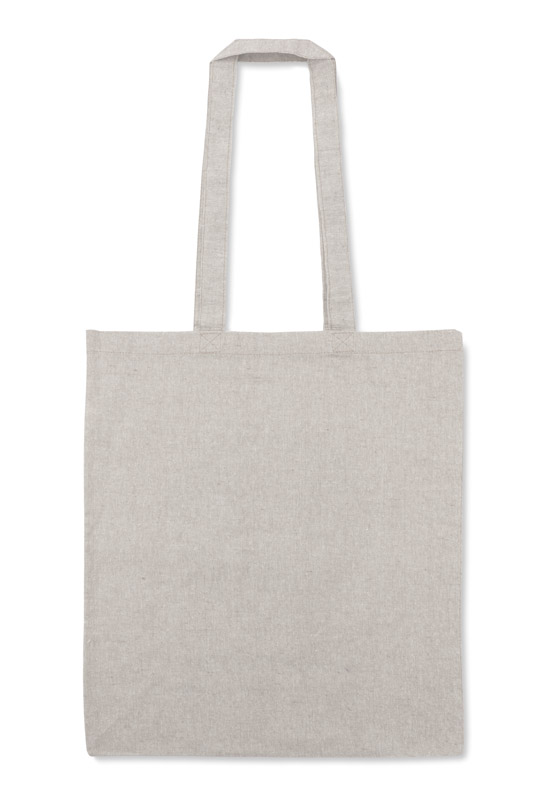 Torba MELANGE wykonana jest z bawełny pozyskanej z recyklingu, dzięki czemu oszczędność wody w procesie produkcyjnym jest znaczna. Posiada rączki o długości około 70 cm. Gramatura bawełny 140g/m2