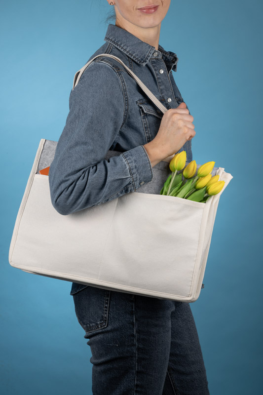 Torba bawełniana PAJ o gramaturze 320 g łączy dwa materiały – przód i tył wykonano z filcu, natomiast spód, boki, uchwyty oraz dwie przednie kieszenie z bawełny. Posiada długie uszy, które pozwalają na wygodne noszenie na ramieniu. Otwarta konstrukcja umożliwia szybki dostęp do zawartości. Sprawdzi się zarówno jako torba na zakupy, jak i na plażę czy spacer. Możliwość znakowania czyni ją praktycznym gadżetem reklamowym.