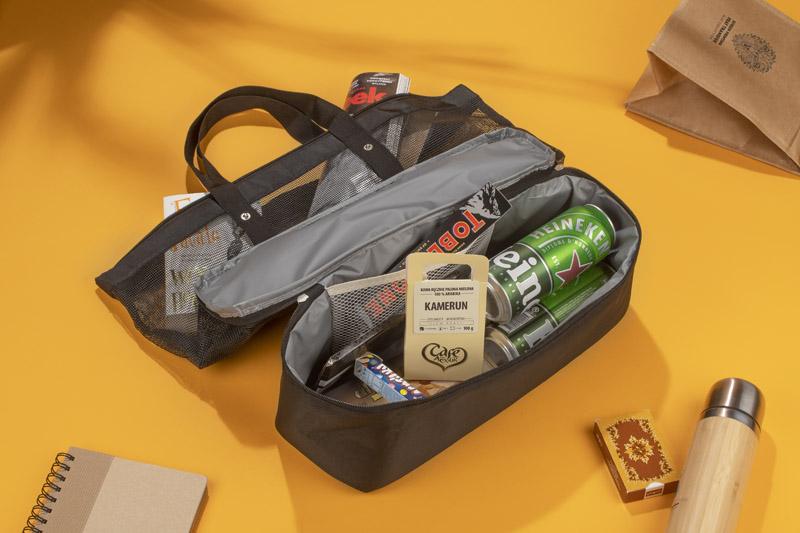 Torba plażowa wykonana z poliestru i siateczki. Bardzo pojemna. Dodatkowo posiada komorę z izolacją termiczną PEVA o wymiarach 12 x 13 x 42cm.