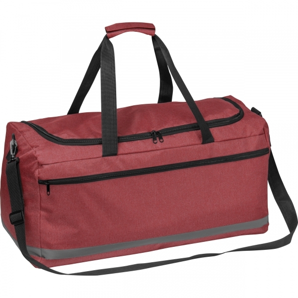 Duża torba sportowa wykonana z poliestru 600D z odblaskowym paskiem. Torba posiada dużą komorę główną oraz boczną kieszeń zamykaną na zamek. Torbę można przenosić za pomocą uchwytów lub odpinanego, regulowanego paska na ramię.