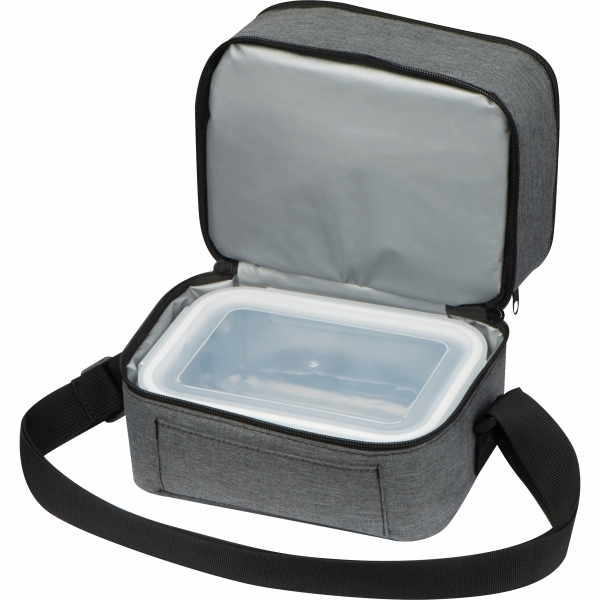 Torba chłodząca, dwupoziomowa. W dolnej komorze znajduje się idealnie dopasowane, szklane pudełko na lunch.
