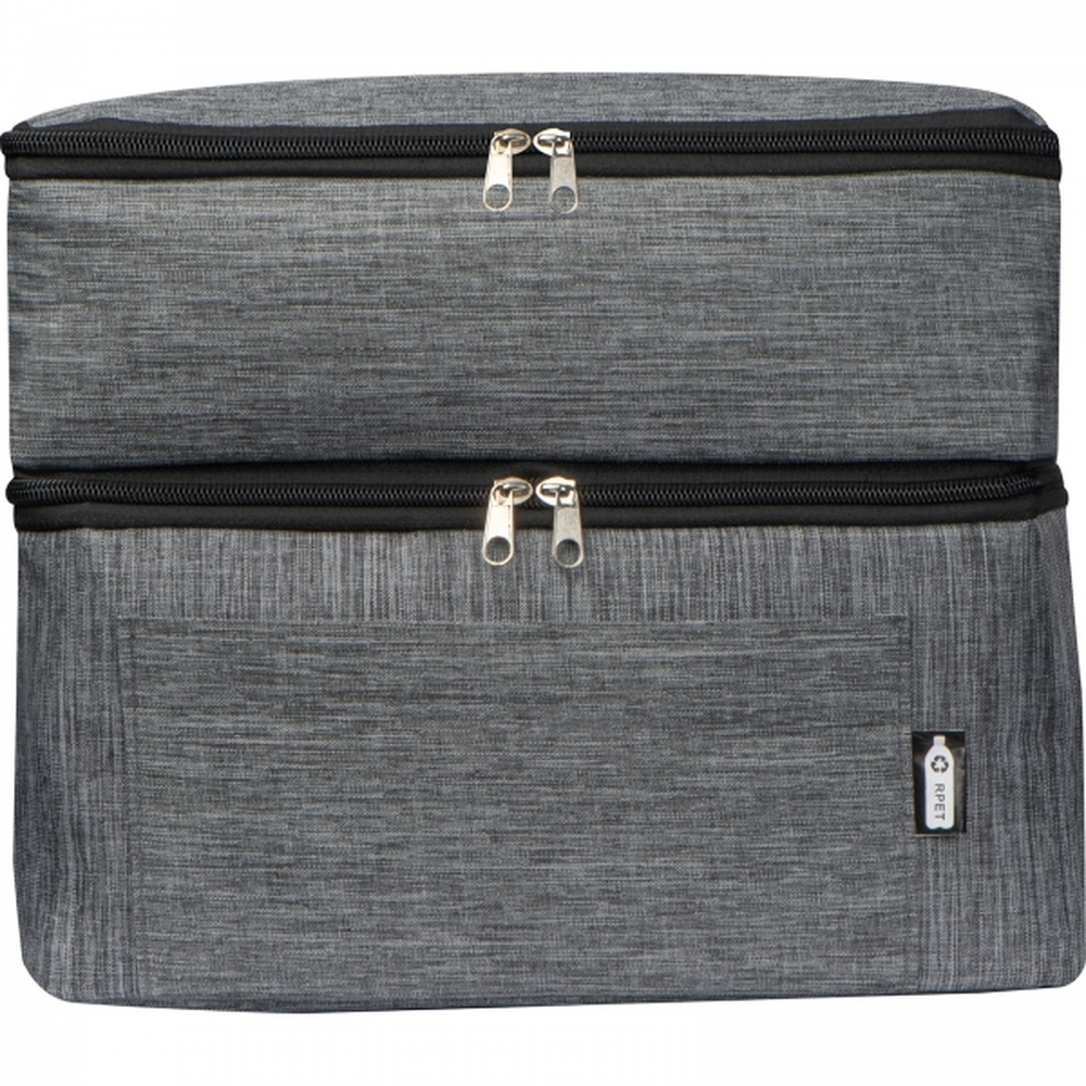 Torba termiczna RPET to doskonałe rozwiązanie dla osób ceniących funkcjonalność i ekologię. Wykonana z trwałego, odpornego na uszkodzenia materiału RPET 600D, gwarantuje długotrwałe użytkowanie i wytrzymałość w codziennych warunkach. Dzięki dwóm oddzielnym komorom chłodzącym, utrzymującym świeżość produktów, pozwala na wygodną organizację żywności oraz napojów podczas pikników, zakupów czy pracy. Praktyczna, zapinana na zamek kieszonka na froncie to idealne miejsce na drobne akcesoria, takie jak sztućce czy serwetki, zapewniając porządek i szybki dostęp.