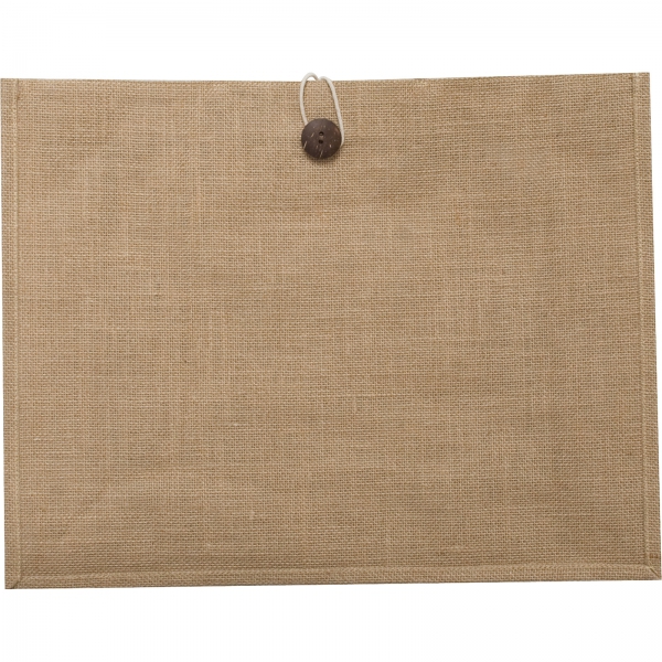 Ekologiczna torba z juty, w naturalnym kolorze, z uchwytami wykonanymi z mocnego sznurka, zamykana na guzik.