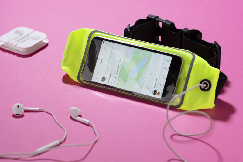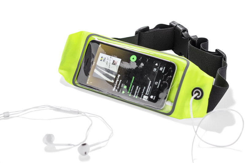 Sportowa elastyczna torebka biodrowa TROTE przyda się każdemu kto lubi aktywnie spędzać czas. Jaskrawy kolor oraz elementy z taśmy odblaskowej zapewnią każdemu użytkownikowi widoczność po zmroku. Torebka wyposażona jest w kieszonkę z wygodnym okienkiem na telefon, dzięki któremu łatwo i szybko można sprawdzić ważne informacje na telefonie. Dodatkowo torebka ma wyjście na słuchawki.