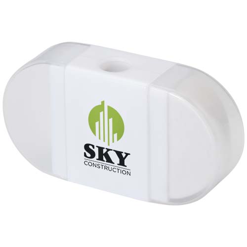 Temperówka z gumką i przezroczystymi zatyczkami po obu stronach. Wymiary: 6,2 x 3,3 x 1,6 cm.