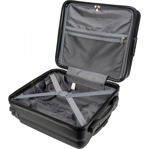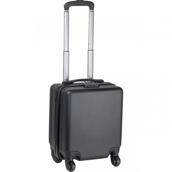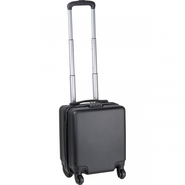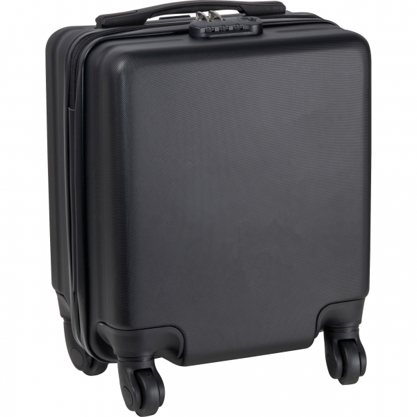 Czarna walizka na kółkach, która mieści się pod siedzeniem samolotu. Walizka posiada przegródkę na laptopa o wielkości 14 cali. Idelana na podróż służbową lub weekendowy wyjazd.