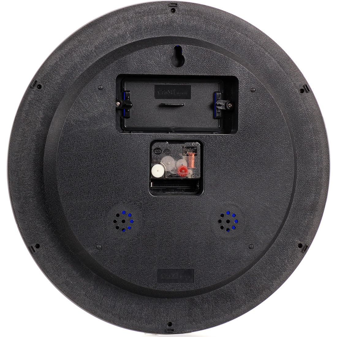 Zegary firmy CrisMa cechuje wysoka wytrzymałość i elegancki wygląd. Ten model, oprócz wskazywania godzin, pokazuje temperaturę oraz wilgotność powietrza. Estetyczna i wytrzymała obudowa, cichy mechanizm zasilany wyłącznie jedną bateria AA. Brak baterii w zestawie.