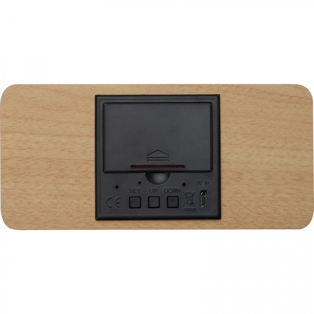Elegancki zegar na biurko, wykonany z połączenia naturalnego drewna oraz trwałego tworzywa sztucznego, to doskonały dodatek do każdego nowoczesnego biura czy domowego stanowiska pracy. Wyraźny, podświetlany wyświetlacz prezentuje aktualny czas oraz temperaturę powietrza, co pozwala na bieżąco kontrolować warunki otoczenia. Zegar wyposażono w praktyczne funkcje alarmu i drzemki, które pomogą skutecznie organizować dzień. Innowacyjna technologia bezprzewodowego ładowania o mocy 5W umożliwia wygodne doładowanie smartfona – wystarczy położyć telefon na powierzchni urządzenia, eliminując uciążliwe kable i zapewniając porządek na biurku.