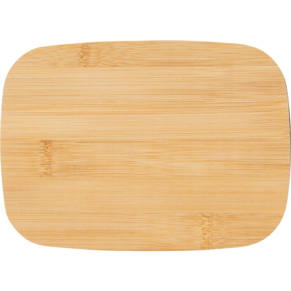 Zestaw prezentowy w ekologicznym opakowaniu, składający się z lunch boxu (aluminiowy z zamykanym bambusowym wieczkiem), torby termicznej z poliestru 600D oraz butelki do picia (stal nierdzewna o pojemności 500 ml). Twoje logo zostanie wygrawerowane na lunch boxie oraz na butelce.